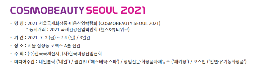<2021 서울 국제화장품·미용산업박람회>에 참가하게 되었습니다.
